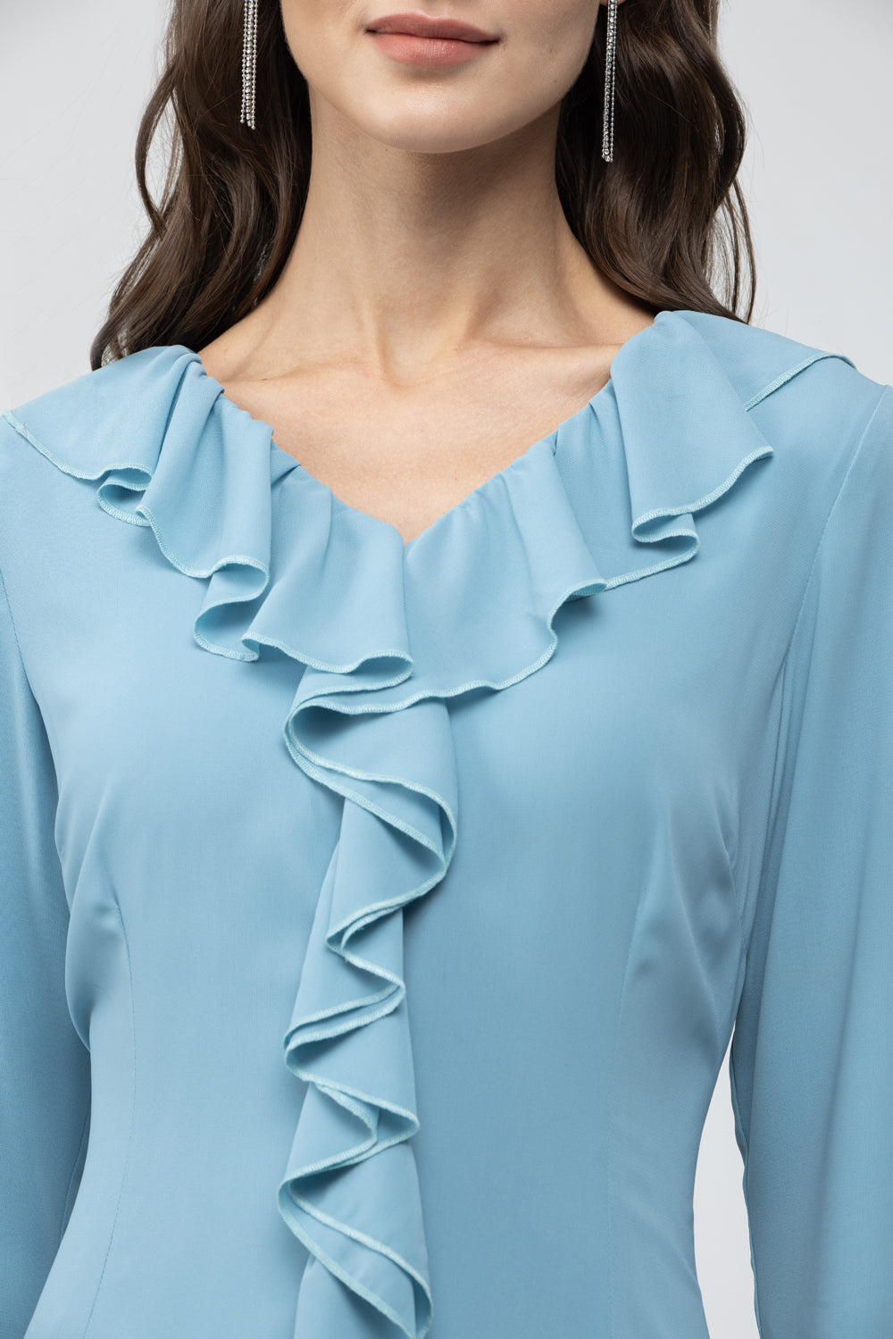 שמלת מקסי בצבע תכלת מבד שיפון עם בטנה.
