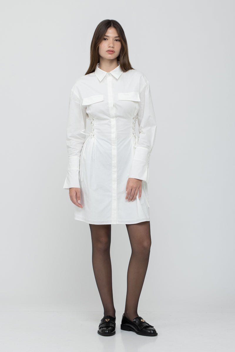 צווארון וכפתורים נסתרים לאורך השמלה.